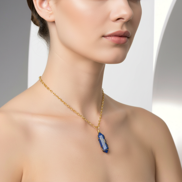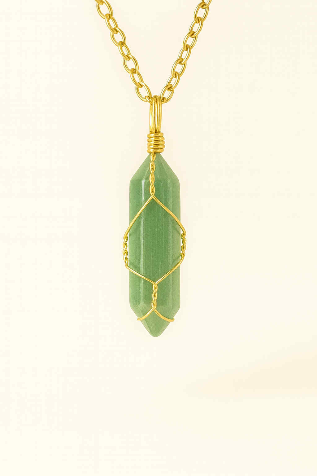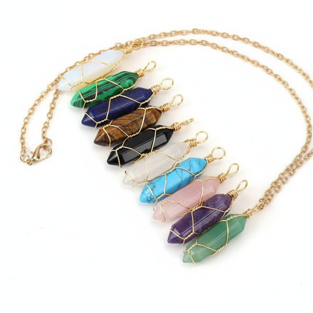⸻ Specifications • Materials: Copper wire & genuine natural stones • Pendant Size: 0.8cm x 3.2cm • Chain Length: Approx. 52cm (adjustable) • Weight: ~9g • Shape: Hexagonal pendant with premium water-wave chain.