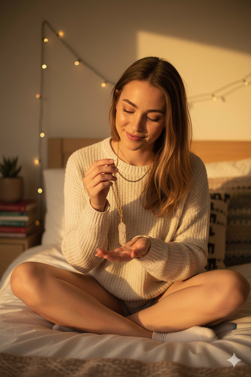 Wear it on the days you need calm, clarity, or a gentle reminder of your own glow